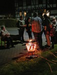 Es war noch finster am Ostersonntagmorgen als die Gottesdienstbesucher zur Osternachtandacht an die Martin-Luther-Kirche kamen. Vor der Kirche erwartete uns bereits das Osterfeuer.